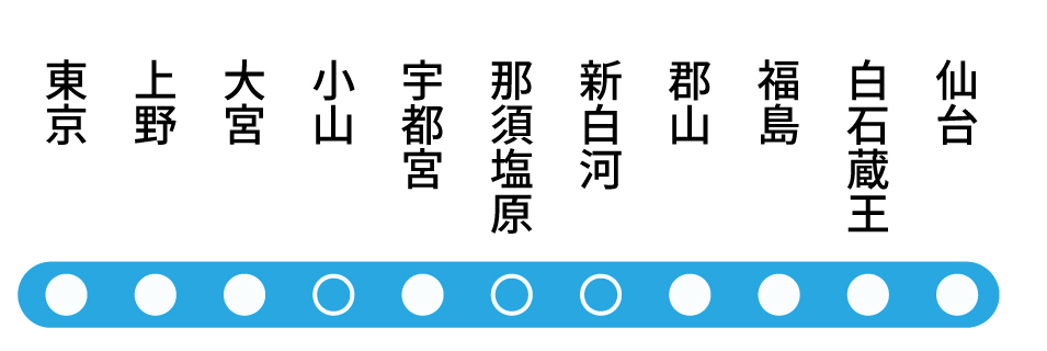 ですので、元来通過駅となる小山、那須塩原、新白河、白石蔵王なども停車します。
